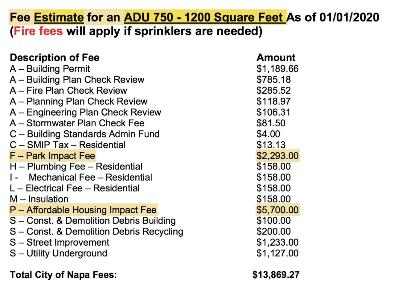 Here’s an example of a fee estimate from the city of Napa (where I live).